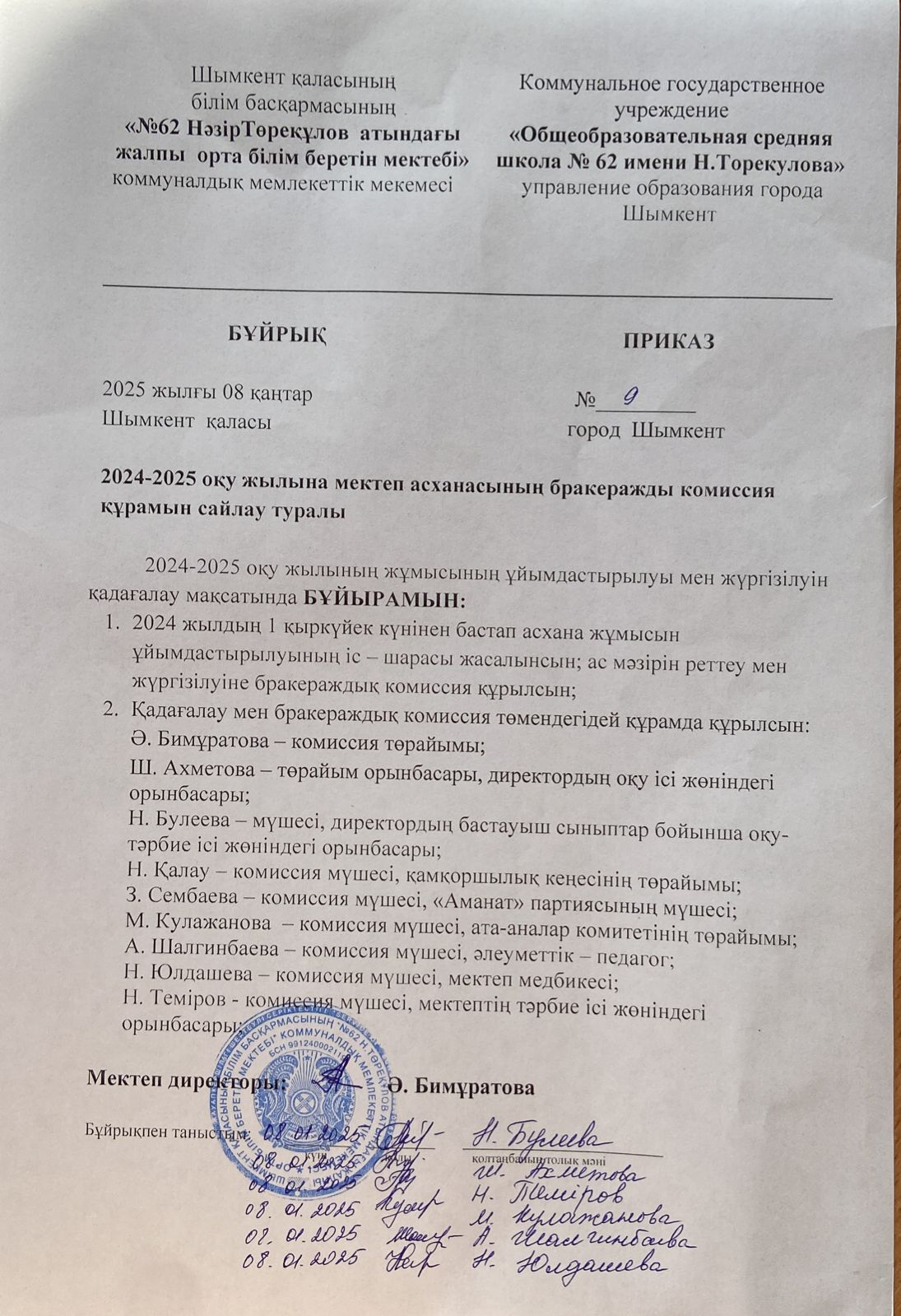 08 январь 2025 0 1 2 3 4 5 2024-2025 оқу жылына мектеп асханасының брокеражды комиссия құрамын сайлау туралы бұйрық