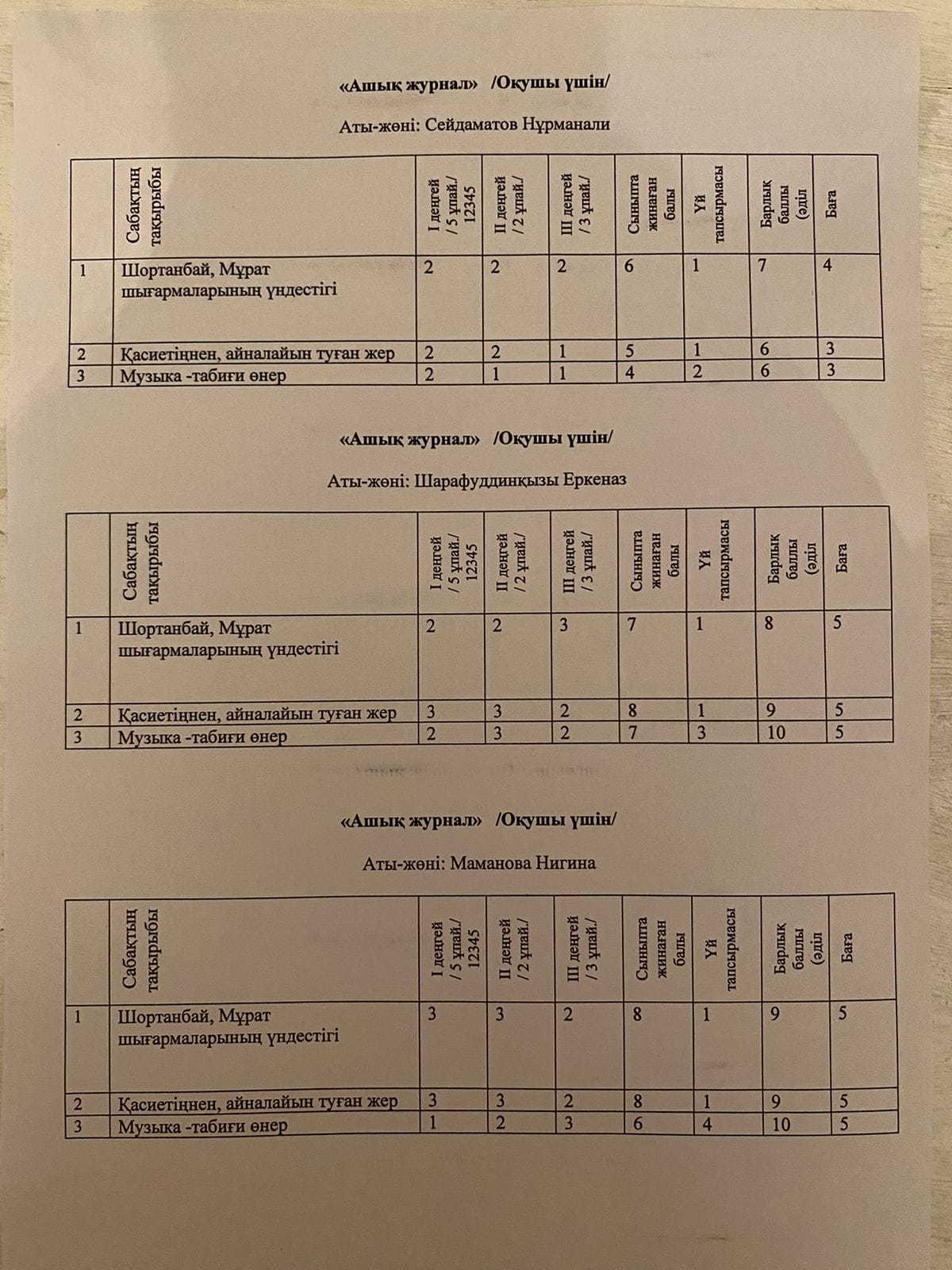 Сабақтың тақырыбы музыкамен байланысты болғандықтан, сынып оқушылары "Қазақ музыкасы", "Орыс музыкасы", Шетел музыкасы" болып үш топқа топтасты. Оқушылар өздерінің таңдауы бойынша топқа бөлінді. Ұйымдастыру кезеңінде оқушылар Қарақат Әбділдинаның "Бақыт" туралы өлеңін бүкіл сынып болып айтты. Адамның әр сәті бақыт екенін түсінді. Үй тапсырмасын "Нақты бес дерек" әдісі бойынша өздерінің, ата-аналарының туып өскен жерлерін зерттеп, қорғады. Әр топқа топ атауларына байланысты мәтін беріліп, сол мәтіннің тақырыбы, негізгі ойын анықтады. Оқушылар Ашық журнал бойынша бағаланды. 2-тапсырма бойынша әр том өз өнерлерін көрсетті. "Қазақ музыка" тобында Шараффудинқызы Еркеназ домбырамен "Жақсы адамдарым" атты өлең айтса, Жақсыбай Асхат күмбірлеген күйін тартты. "Орыс музыка" тобында Маманова Нигина орыс тілінде өлең айтты. "Шетел музыка" тобында Аблай Перизат ағылшын тілінде өлең айтып, керемет көңіл-күй сыйлады. Саралау тапсырмалары болды. Шығармашылық тапсырма бойынша "Әуенді тап" ойыны ойнатылды. Әуенді дұрыс тапқан оқушыларға сыйлықтар таратылды. Оқушылардан кері байланыс алынып, үйге тапсырма берілді. Оқушылардың сабаққа деген қызығушылығы өте жоғары болды. Оқушылар білімдерімен қатар өнерлерін де көрсетті. Сабақта жинаған ұпайлары Ашық журналға белгіленіп, қойылды. Ашық журнал арқылы бағалау өте тиімді әрі ашық және оқушылардың білім деңгейін әділ бағалайды. Сабаққа зерделеу топ мүшелері қатысты. Әр мұғалім оқушыларды жеке жеке бақылап, ұсыныстарын айтты. Сабағымыз музыкамен байланысты болғандықтан мектебіміздің музыка пән мұғалімі, ұлағатты ұстаз Төлегенова Гүлнар апайымыз сабақ бойында оқушылардың айтқан әндерін өзінің музыкалық аппаратымен сүйемелдеп отырды. Музыка туралы мағлұмат беріп өтті. Зерделеу топ мүшесі, ағылшын тіл мұғалімі Сейдахметова Салтанат В деңгейдегі оқушының өте өнерлі екенін айтып өтті. Тарих пән мұғалімі Орынбаева Айтолқын А деңгейіндегі оқушының топта оқушыларды басқаруы, бойында көшбасшылық қасиеттің бар екенін атап өтті. Директордың әдістеме жөніндегі орынбасары Байғараева Әсемкүл Жүнісқызы оқушылардың белсенділіктерінің жоғары болғандығын, музыка әлеміне кіріп, оқушылардың білімімен қатар өнерлерінің де жақсы деңгейде екені туралы пікірін білдірді. Оқушыларға шығармашылық табыс тіледі.
