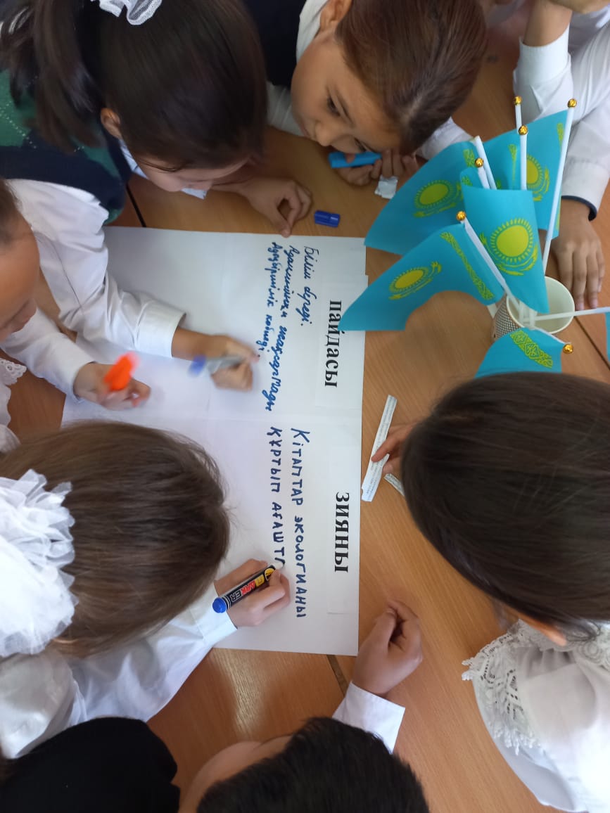 [size=5]Мемлекет басшысы Қасым-Жомарт Тоқаевтың Ұлттық қоғамдық сенім кеңесінде берген тапсырмасына сәйкес БҒМ «Оқуға құштар мектеп» жобасын іске асыру мақсатында №62 Н.Төреқұлов атындағы жалпы орта білім беретін мектептің бастауыш сыныптарында онкүндік жүруде. Булеева Назира Рустемқызы 4 «А» сыныбында «Сандық әлем – оқу әлемі» тақырыбында дөңгелек үстел өтті. Оқушылардың кітап оқу құзыреттілігін қалыптастыру үшін кітап және интернеттің пайдасы мен зияны туралы жан-жақты ақпараттар келтірді. Оқушылар өз ойларын ортаға салып, пікірлерін білдірді.