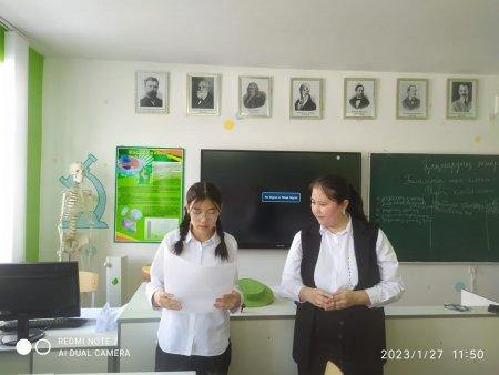 Шымкент қаласы білім басқармасына қарасты №62Н.Төреқұлов атындағы жалпы орта білім беретін мектебінде 23.01-27.01.2023 аралығында «Біз, сізді жарқын әлемге жетелейміз» атты бірлестік жетекшілер апталығы өтті. Апталық барысында мектебімізде он тірек мектептерге тәжірибе алмасу бойынша қалалық семинар өтті. Қазақ тілі мен әдебиеті пәнінің бірлестік жетекшісі Кекилова Жадра 7в сыныбымен «Ғаламтор және кітап. Түнгі кітапхана» тақырыбында ашық сабақ өтті. Ашық сабаққа қаладан келген қонақ ұстаздар және мектеп ұстаздары қатысты. Сабақ барысында оқушылар үш топқа топтастырылып, деңгейлік тапсырмалар арқылы оқушыны Ашық журналмен бағалау жүйесі көрсетілді. Kahoot ойыны арқылы грамматикалық тапсырмалар орындалды. Үй тапсырмасы «Бір сөйлем» әдісі бойынша сұралды. Оқушылар «Түнгі кітапхана» туралы өте көп қызықты мәліметтер айтты, талдау жұмыстарын жасады. Тыңдалым, яғни оқу мақсатына сай Абайдың 31 қарасөзін тыңдау арқылы тірек сөздер мен тіркестерін тауып, оларды синонимге ауыстырып, жинақы мәтін жазып шықты. Сабақ өз мақсатына жетті. Оқушылар өте белсене қатысты, келген қонақтар жақсы баға берді.